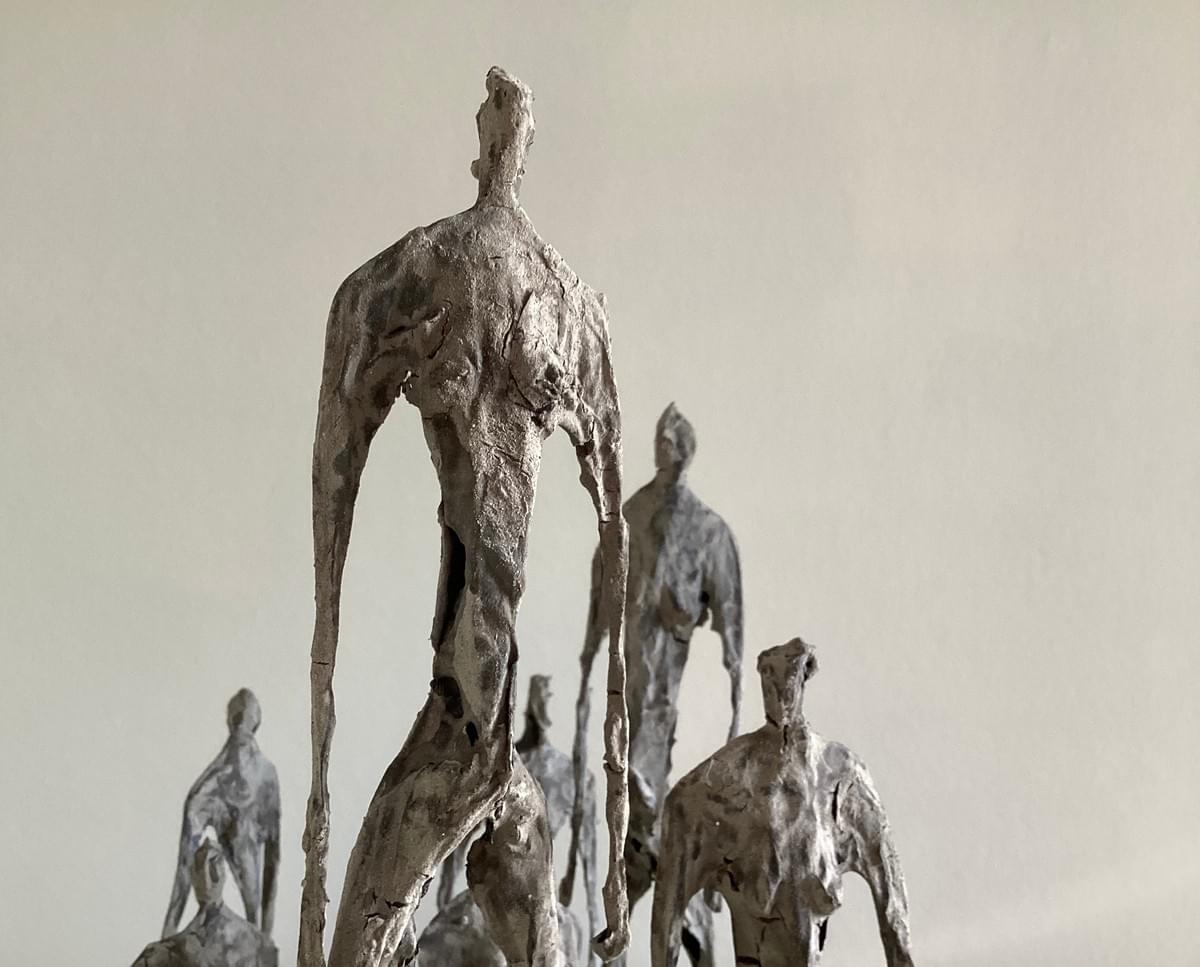 draadfiguren van ijzerdraad,papier en slib uit de Oosterscelde 30x30x40cm(2023)